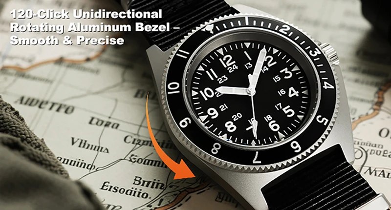 Bezel:120 Clicks Unidirectional Rotating Aluminum Bezel
