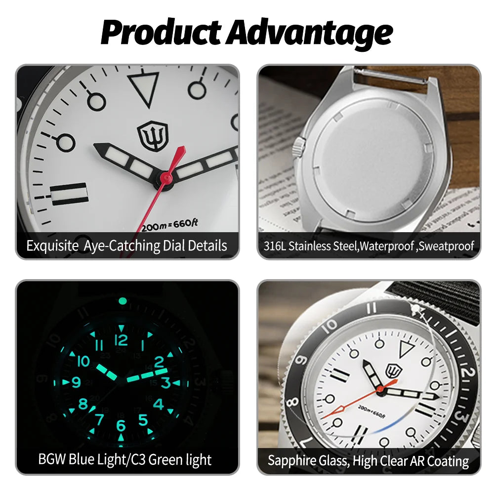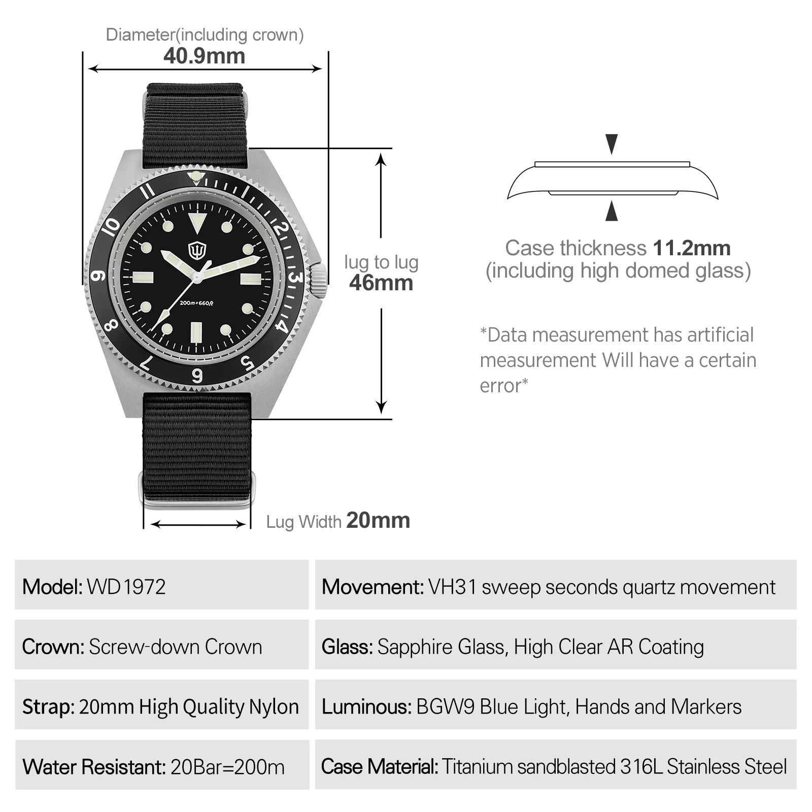 Watchdives WD1972 Quartz Watch VH31 Sweep Seconds Movement Sapphire Crystal BGW9 Luminous 20Bar Waterproof Wristwatch