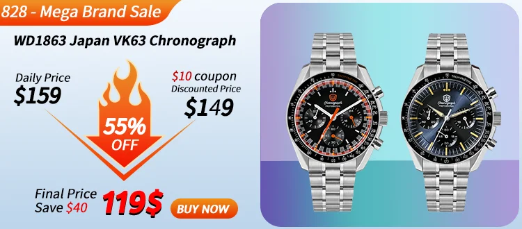 Watchdives WD1972 Quartz Watch VH31 Sweep Seconds Movement Sapphire Crystal BGW9 Luminous 20Bar Waterproof Wristwatch CHICBURN