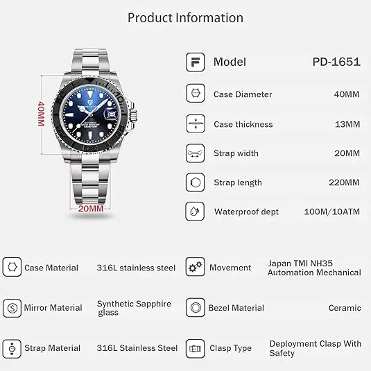 Feature: DIVER,Day/Date,Auto Date,Complete Calendar,Water Resistant